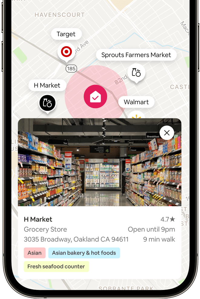 For long-term stays, "Grocery Store" isn't enough. We added specialized tags like "Asian Bakery" or "Fresh Seafood" based on user requests, helping guests find their specific lifestyle needs.