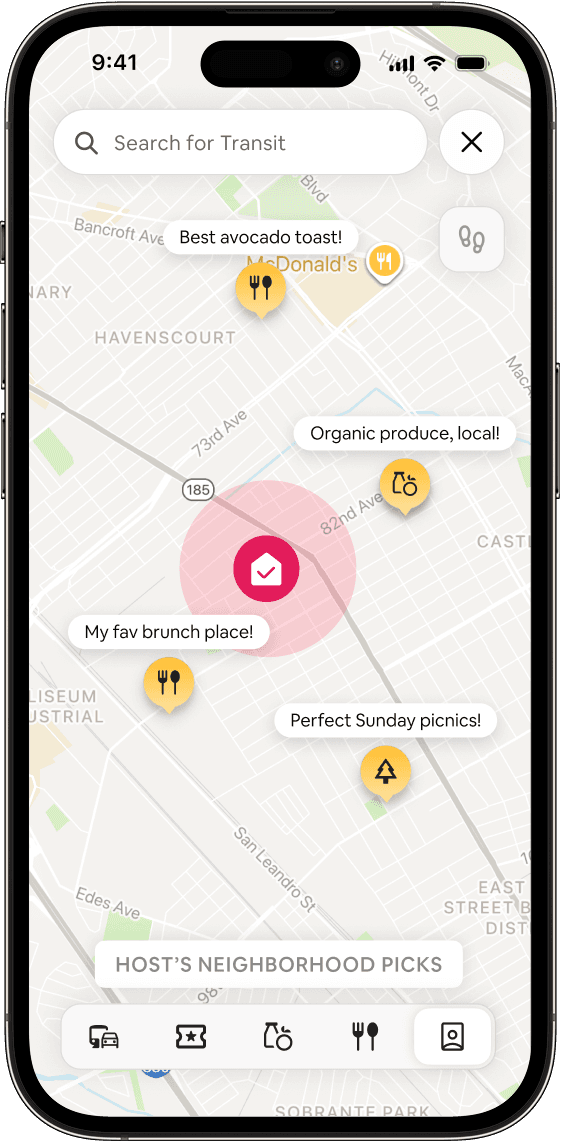 V2 (Final): We simplified it into a segmented control with 4 distinct modes (Transit, Host Picks, Essentials, Things to Do). By forcing the user to view one "Data Layer" at a time, we prevented the map from becoming a cluttered mess.